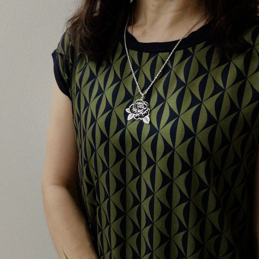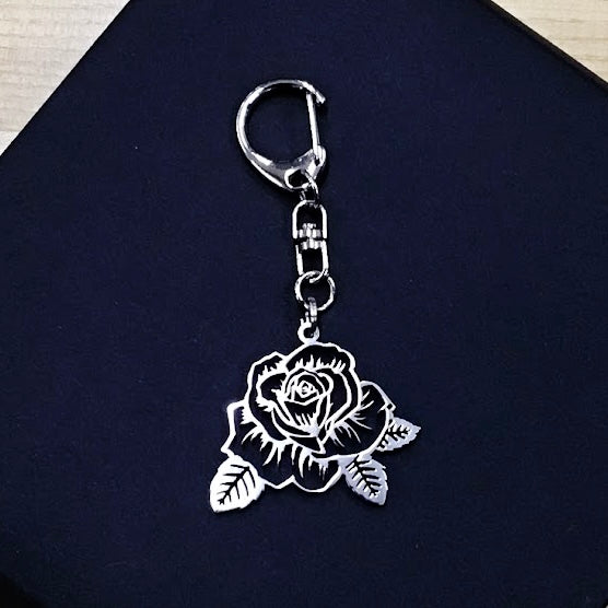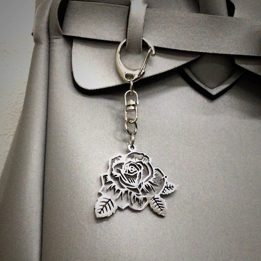 『薔薇一花(いっか)』── 咲き誇る一輪の薔薇が放つ気高さと優雅さを、ステンレスの輝きに映しとったような可憐なチャームです。柔らかな薔薇の花びらの美しい重なりを、繊細な切り絵のように描き出し、光を受けるたびに、ステンレスの光沢に映し出される色合いに、表情を変える姿は、まるで生命の息吹を宿すかのように胸元で豊かに輝きます。 精緻なレーザーカット加工と製図調整技術、そして、熟練の職人が一つひとつ丹念に仕上げ磨きを施し、冷たい金属にやわらかな温もりと清らかな光沢を与えました。 岐阜県関市に受け継がれる金属加工の伝統と技が息づく、永くご愛用いただける逸品です。 薔薇は古来より「愛」「美」「誇り」の象徴とされ、とりわけ一輪の薔薇には、「あなたを想う」という特別な意味が込められています。華やぎと落ち着きをあわせ持つ『薔薇一花』の佇まいは、日常の装いを上品に引き立て、特別なシーンにはより一層の華を添えます。 チャーム単体でのご購入に加え、キーホルダー仕様(ステンレス製金具)やネックレス仕様(肌に優しいサージカルステンレスチェーン/長さ50cm・太さ2mm)もご用意しております。 薔薇を愛するすべての方へ、ご自身へのご褒美にはもちろん、大切な方への贈り物としても特別な想いを届け、日常に優雅な彩りと心に残る余韻を添えられますように。心を込めてお届けいたします。