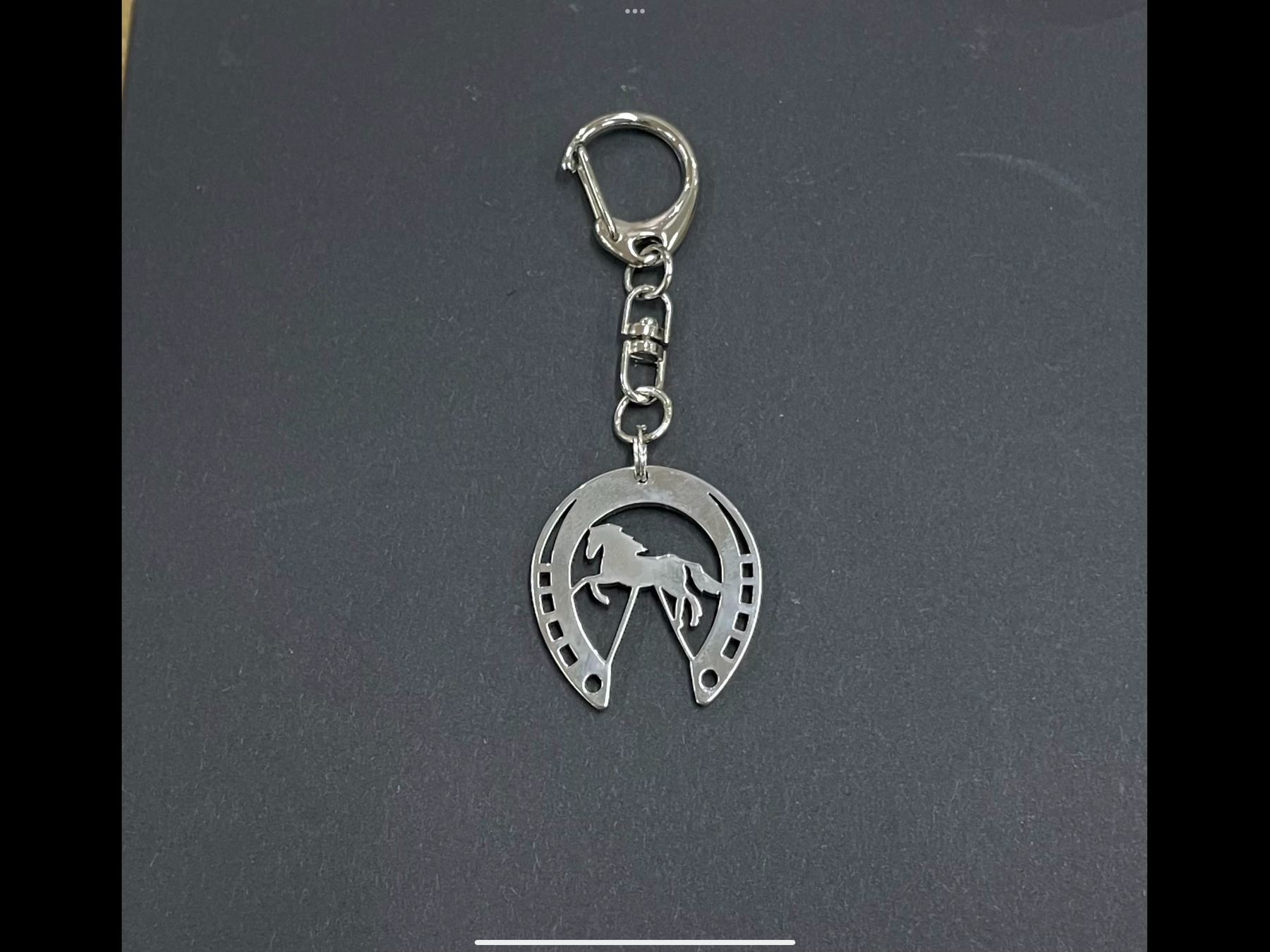 丸みのある馬蹄のフォルムがチャーミングなこちらの『実蹄馬蹄』には、ほかにはない職人のこだわりが込められています。馬の蹄鉄の裏側の形、普段は誰も目にすることのない「リアルな蹄の形」を、職人が調べ、一枚のステンレスに、繊細で極細のラインで表現し、落とし込んだ特別な馬蹄です。馬蹄としての「幸運を受け止める力」に、さらにリアルな「生命の躍動」が息づいています。馬が軽やかに駆ける姿と、